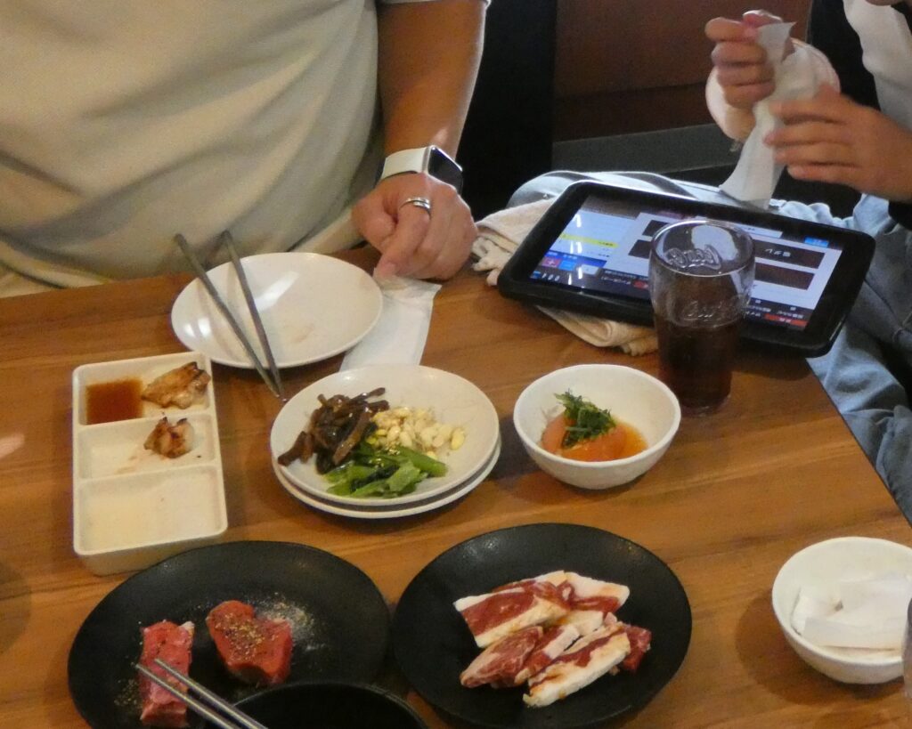 貸し切りバスに乗って福井市へ行き、まずは皆で焼き肉を楽しみました。普段、他ユニットの子や職員と一緒にご飯を食べる機会は少ないですが、学校での話や何を食べようかという話で盛り上がっていました。焼き肉だけでなくデザートも大人気でソフトクリームコーナーに列ができることもありました。食べ放題ということもあり、皆お腹いっぱい食べていました。