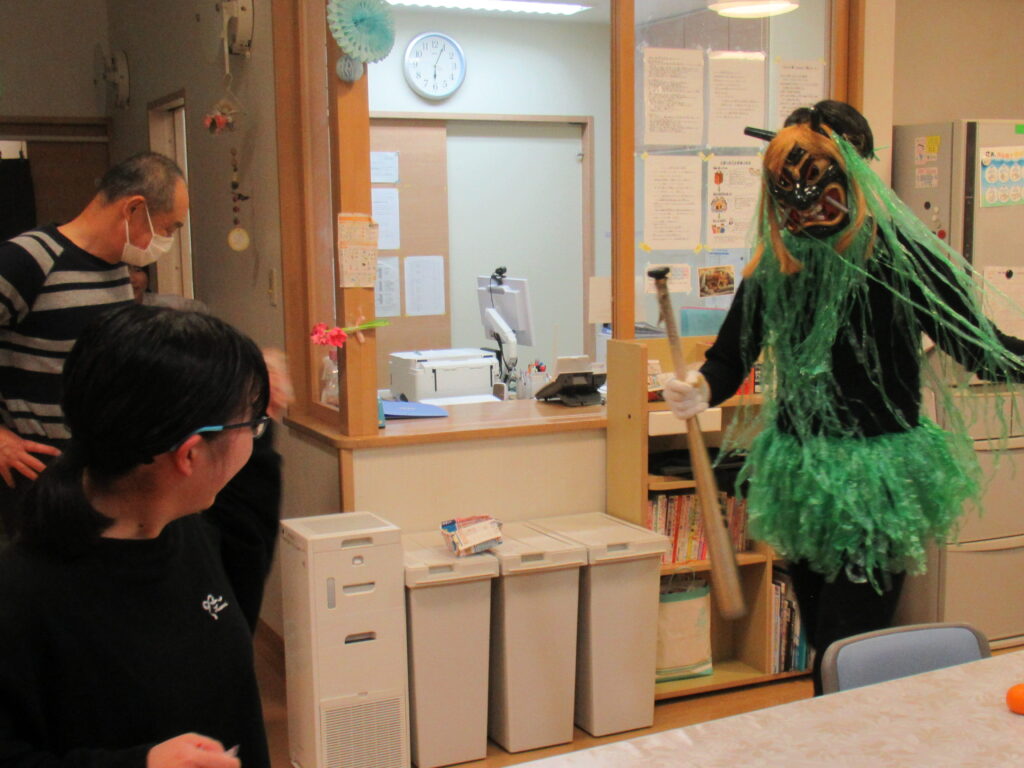 今年の節分も各ユニットに鬼が来ました。
